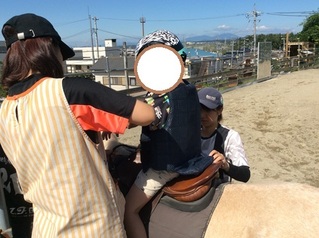 お馬さんに乗るといつもより目線が高くなり、喜んでいました(*'▽')