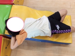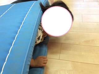 ふかふかマットの上に、クッションマットを置いて、でこぼこな道を作りました(^_-)-☆