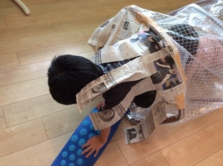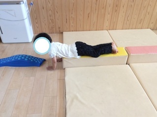 「ワニ」と話をしながら平均台を腕の力で進んでいました!!