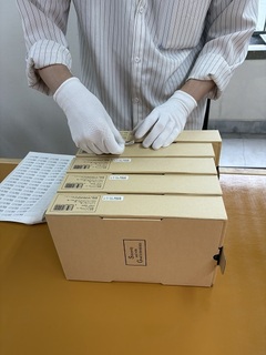 段ボール箱から箱詰めの箱を取り出し同じ方向に並べておきます。