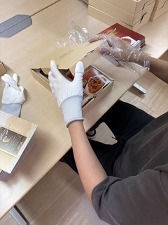 皆さんに食べて頂くために1種類のおかずも入れ忘れが内容に気を付けて作業を行いました。