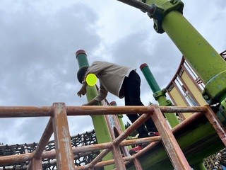 自分のペースで進みながら、ローラーすべり台を滑り、再度アスレチックに挑戦をしました。