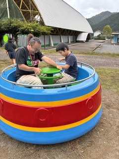 こちらも自分のタイミングで乗り、自分で動いたり、職員に押してもらったりと楽しむことができました。