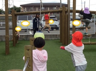 ウッドランドではホースの職員に雲梯ができることを見せていました(*^^*)