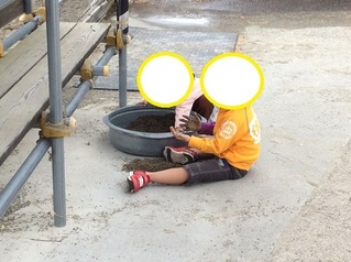 近くにあったカップに砂を入れて、砂の触覚を楽しみました(*'▽')