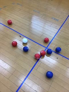 先攻がジャックボールを投げます。今日は一部変更して交互にボールを投げます。