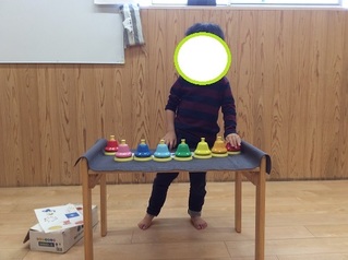 ”ドレミの歌”に合わせてペープサートをあげたり、卓上ベルを音階順に鳴らしたりしました(^^♪