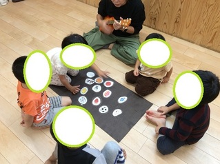 お友だちと一緒に絵カードの取り合いをかるた遊びの要領で楽しみました^^