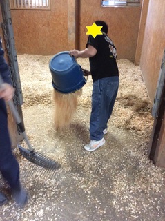 こんにちは。今日はみんなで馬のお世話を行いました。いつも通り、役割分担からスタートし、自分が何の担当をするか決めていきます。