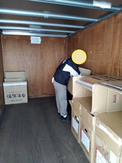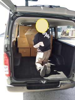 今日は、箱詰め作業の納品と引き取りに職員と利用者さんで出かけました。