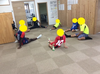 けがをしないようにストレッチからスタートです。
