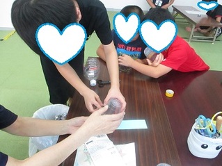 ペットボトルを選んで切った子は、切り口を危なくないようにテープで飾ります。