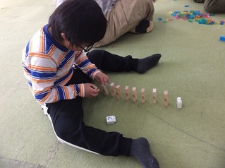 少し前の土曜日の自由時間にドミノに取り組んだ子は、そのときのことをよく覚えていて「がんばるためにお水たくさん飲むね」とやる気満々!