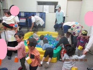 ボールプールでは、たくさんのボールの中から、シールがついたお宝ボールを見つけます。