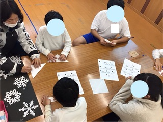 さて、今日の活動は「切り絵で雪の結晶づくり」です。