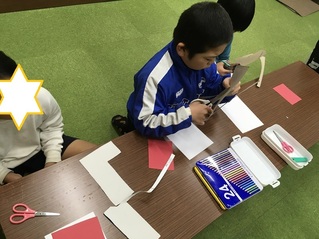 最初に今日の活動で必要な「コグトレ棒」を作りました!