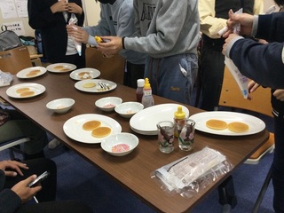 今日の活動は、パンケーキに生クリームやチョコレートを使ってデコレーションし、