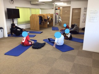 怪我をしないためにみんなで声を掛け合ってストレッチを行ってからグラウンドに向かいました!
