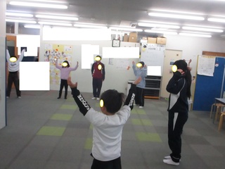 グラウンドにはまだ雪がちらほらあったため雪のない小さなコートを使って活動に取り組みました!
