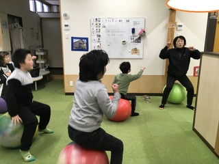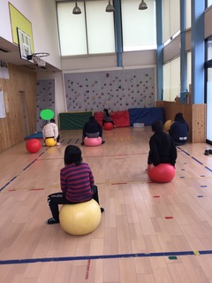 今日の午前の活動は「enjoyバランスボール」をやっていきました。