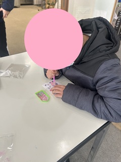 午前中は、継続して取り組んでいるビーズアートの活動を行いました。