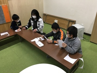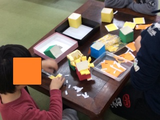 今日の活動は、明日の活動で使う豆まきのカップを作りました。