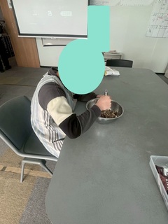 チョコパイを袋から出したり、牛乳をかけたりしていきます。