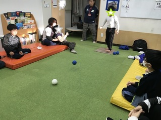 いつも行っているボッチャですが今日は持ち方や投げ方について み・・・