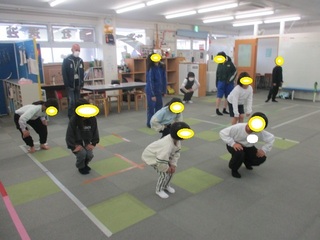 みんなで協力して順番を行いスタート★みんなで楽しく身体を動かしましょう。
