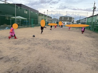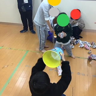 さて、本日の活動は『デカボールで転がしドッジ』でした。