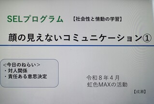本日の虹色MAXでは、SELプログラム「顔の見えないコミュニケーション」の第1回目の活動を行いました。