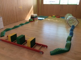 今日はジャングルジムを広げて、様々な道具を繋げ、ジャングルジムサーキットをして遊びました!!