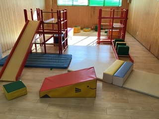 こんにちは(^^)/ 今日はジャングルジムや坂道クッションを使って組み合わせたもので体を動かしました!!