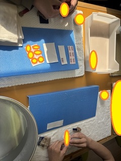 施設内軽作業、おちょこのシール貼りプログラムと