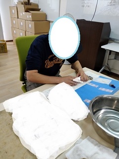 いつもは貼り師として活躍している利用者さんが、今日は検品の担当に挑戦です。