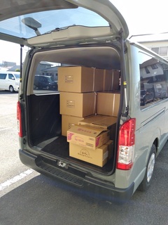 今日は、箱詰め作業の納品と資材の引き取りに行きました。