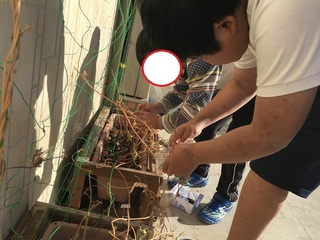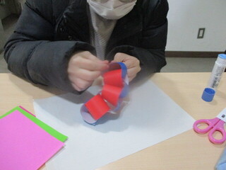 「赤にする。」「僕は白。」など言ってモールを手に取り、ペンでぐるぐる形を作られました。