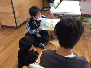 はじめに行った絵本の読み聞かせでは、集中してお話を聞く姿が見られました。