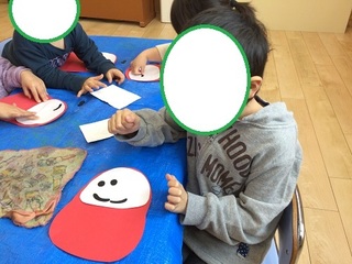 眉毛・目・髭の形に切られたパーツを、自分の好きな顔に作っていきます