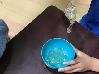 今日のキッズの活動は、キラキラスライムを作ろうです。