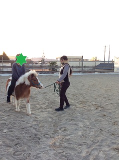 室内で職員手作りすごろくが盛り上がってしまったので、きなこと軽乗ではなく、ちびまるに跳び乗りを行いました。