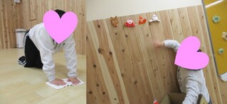 今日は午前中、とても良いお天気だったので、川合公園までお出かけしました。外の空気を感じながら、元気に歩くことができました。午後は、クリスマス飾りを取り外し、掃除機でほこりを吸うなどの清掃を行いました。雑巾がけもがんばりましたね。
