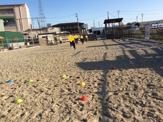 今日は、頂いたサツマイモが痛む前にビーチフラッグを行いました!