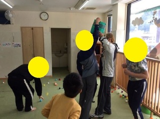 さて 今日の午前は、風船バレーをしました。