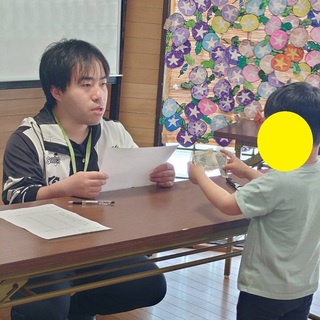 自己紹介もみんなの前に出て 「僕の名前は〇〇です。よろしくお願いします。」と 頑張って話しをしてくれました。(すごいですね(*^-^*))