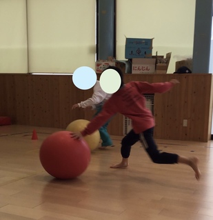 こんばんは 今日は気温が上がって初夏のような暑さになりましたね。 さて 今日の活動は、バランスボールで遊びましょう。