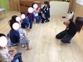 先生の歌に合わせて「こんにちは♬」