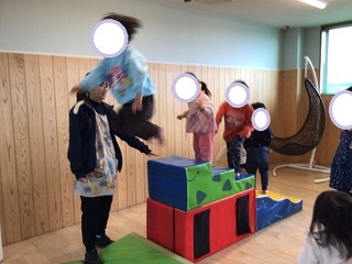 今日はジャングルジムや坂道クッションを使って組み合わせたもので体を動かしました!!