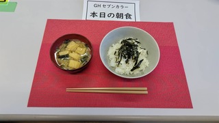 本日の朝ご飯のメインは「玉子ぞうすい」です。今日は、スーと口に入って行く朝ご飯でした。