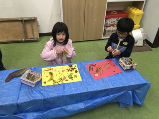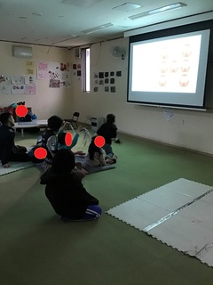 さて、今日の活動は絵で伝言ゲームと言う事でグループを児童で作り